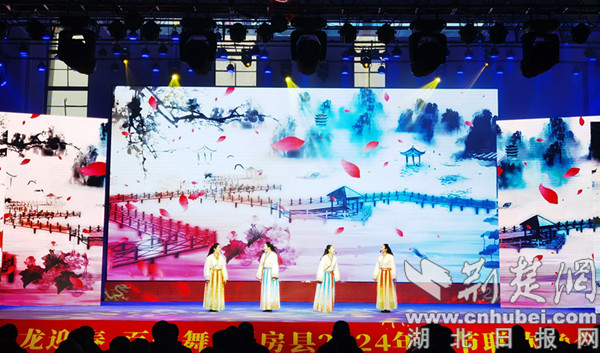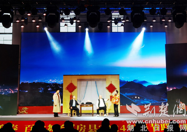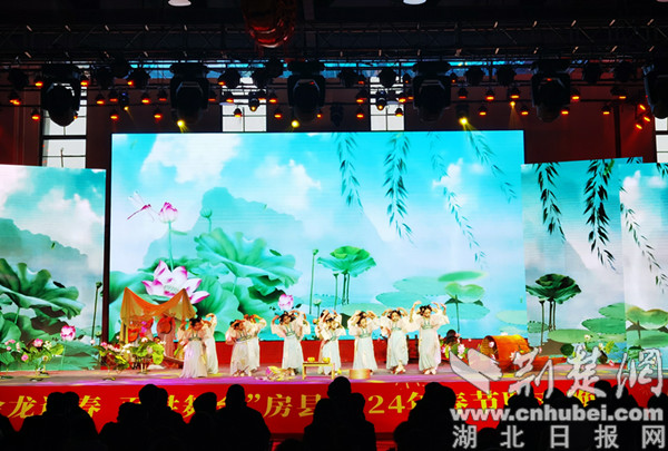 荆楚网(湖北日报网)讯(通讯员 杜达巍)2月3日下午,房县2024年春节联欢晚会在房县一中体育馆精彩上演,舞蹈、表演唱、民歌联唱、小品等14个节目轮番上演,为观众献上了一场丰盛的节日“文化大餐”。各级道德模范、劳模、一线公安干警、环卫工人、群众代表等1000余人在现场观看晚会。