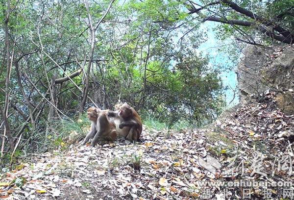 发现野生猕猴群。 通讯员供图