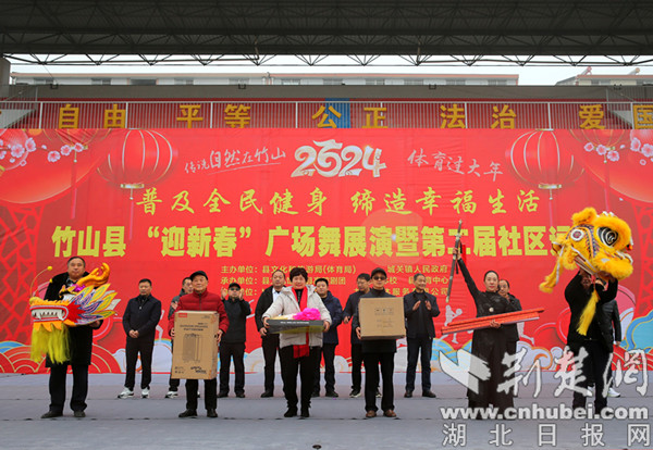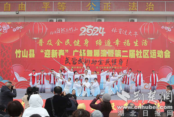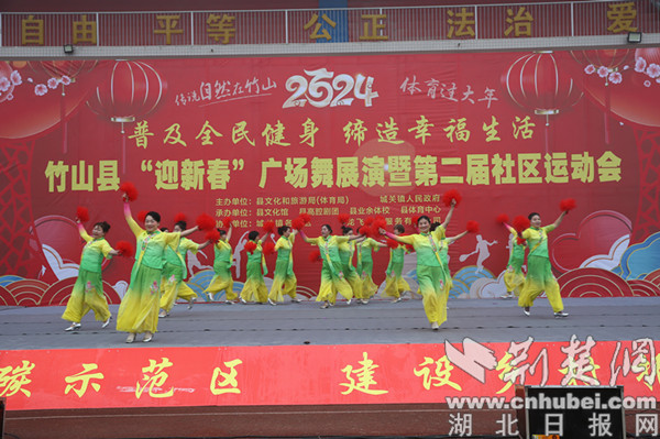 荆楚网(湖北日报网)讯(通讯员 章伟)近日,十堰市竹山县文旅局联合县城关镇人民政府主办“迎新春”广场舞展演暨第二届社区运动会,3000余名干部和社区群众用才艺表演和运动健身的方式欢度新春佳节。