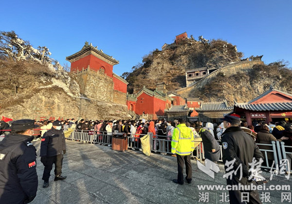 荆楚网(湖北日报网)讯(通讯员 徐刚)春节假期刚刚结束,笔者从武当山特区文旅部门获悉,今年春节假期,特区精心组织开展新春祈福系列活动,丰富旅游产品供给,各景区游人如织,秩序井然。46.3万人次游客来武当山揽胜祈福、问道养生,旅游指标创历史新高,旅游经济实现“开门红”,武当山春节旅游交上了一份亮眼成绩单。