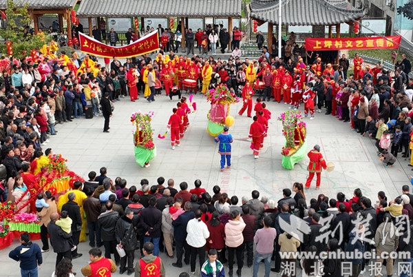 荆楚网(湖北日报网)讯(通讯员 任立柱、黄星栋)“咚咚锵!咚咚锵!”随着锣鼓声响起,一台台“故事”上演。2月18日,湖北省郧西县土门镇初心广场人头攒动。村民们自发组成表演队伍,喜气洋洋,热热闹闹庆祝春节,为郧西县的父老乡亲献上年味十足的民俗文化盛宴和喜庆欢乐、和顺安康的节日祝福。