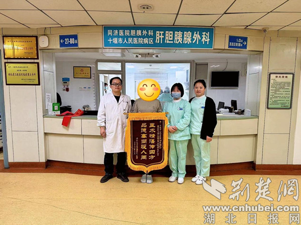 来自丹江口市的陈女士,因胆管结石长时间以来痛苦不堪,经多方打听,慕名前来十堰市人民医院诊治,并在肝胆胰腺外科行胆管切开取石术。经过肝胆外科涂华主任医疗护理团队高效周密安排,住院当天,涂华主任团队即给患者完善相关检查,行胆道镜下碎石取石术。术后,病人恢复快,花费少,彻底解除病痛。患者家属直言:“你们技术好,服务好,我们选对地方了,十堰市人民医院肝胆胰腺外科果然名不虚传!”