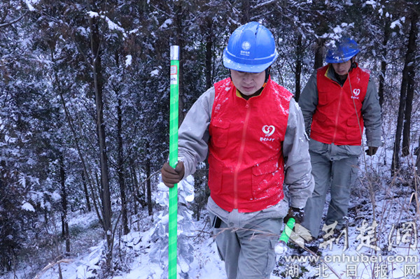 随着新一轮寒潮来袭,从2月20日晚,竹山县开始出现低温雨雪冰冻天气,部分乡镇高寒山区覆雪尤其严重,辖区内线路均有不同程度的覆冰。10千伏宝丰线地处大山深处,地势险峻,进山的路全部被冰雪覆盖,给巡视工作带来极大难度。但该公司工作人员不畏严寒,凭着以往的工作经验,踏着厚厚的积雪,艰难地行走着在密林之中。到达杆塔附近,该所工作人员充分利用红外测温仪对线路金具隔离开关、短路器等进行检查。