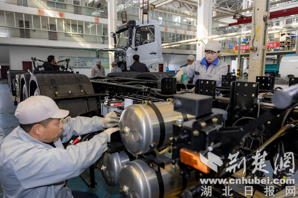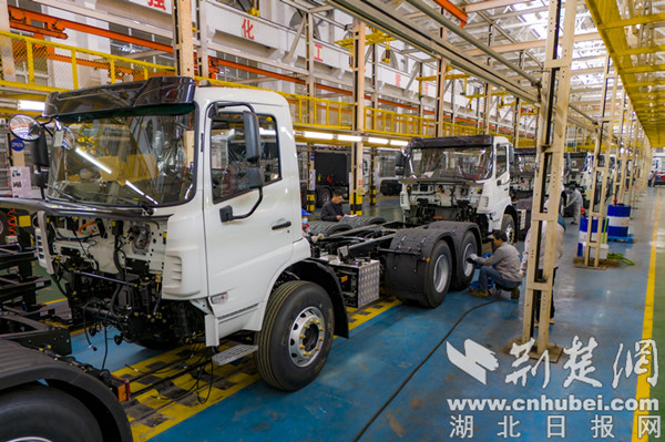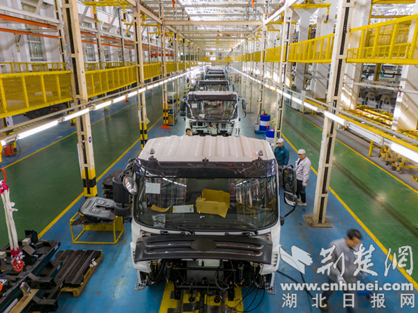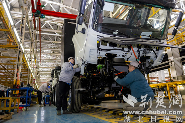 荆楚网(湖北日报网)讯(通讯员 刘爱理)2月27日,位于十堰经开区的湖北世纪中远车辆有限公司(简称世纪中远公司)总装车间里,工人们正加紧赶制新能源重卡订单。该款新能源重卡是世纪中远公司与国家电力投资集团有限公司联合开发的新能源换电式纯电动半挂牵引车,挂车总质量25000kg,准牵引总质量39170kg,半挂车鞍座最大允许总质量15170kg,配装电池281.92kwh,40km/h匀速续航200km。据了解,世纪中远公司一季度计划完成500辆新能源汽车订单,预计实现工业产值2.5亿元,同比增长512%。