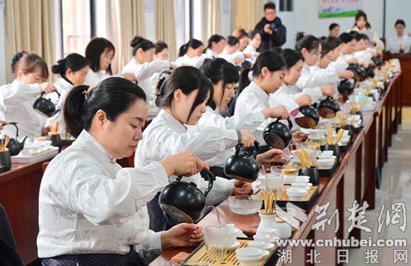 荆楚网(湖北日报网)讯(通讯员 石濡华、吕慧慧)2月29日,湖北省十堰市竹山县首届茶艺师培训班开班。此次培训聘请武汉市高级茶艺师戴玉婵等为学员讲解不同种类茶叶的冲泡、品鉴等知识,传授茶艺表演技巧和茶叶冲泡技能。涉茶经营主体和农技推广员集中参加培训。