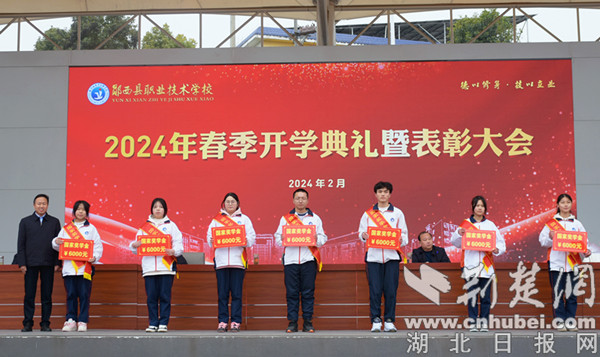 荆楚网(湖北日报网)讯(通讯员 华蒙蒙、闻世渺)龙年伊始,春意盎然。2月29日下午,十堰市郧西职校2024年春季开学典礼暨表彰大会在学校运动场隆重举行。活动由校党委副书记余秀锐主持,全校5000余名师生以昂扬的斗志,怀着对新学期的美好憧憬,迎接新学期的到来。