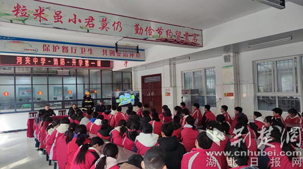 荆楚网(湖北日报网)讯(通讯员 许佳木、马驰骋)3月1日,十堰市郧西县河夹镇组织市场监管所、派出所、消防队到该镇初级中学,通过互动问答、现场体验、应急演练等多种形式为全体师生上了一场丰富多彩又有意义的安全“第一课”,让800余名师生享受了一场安全教育“大餐”。