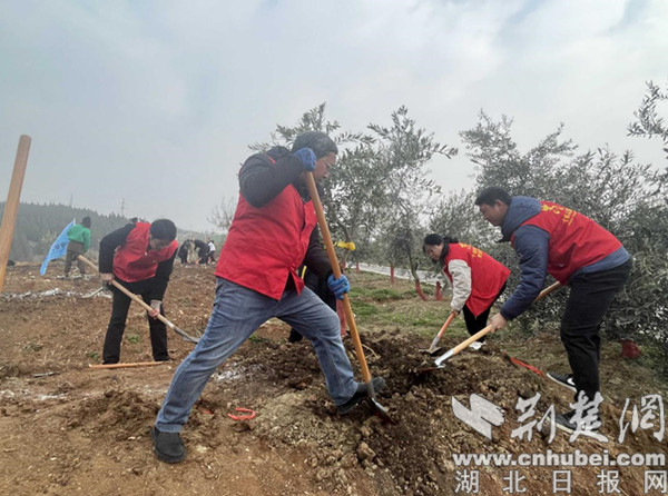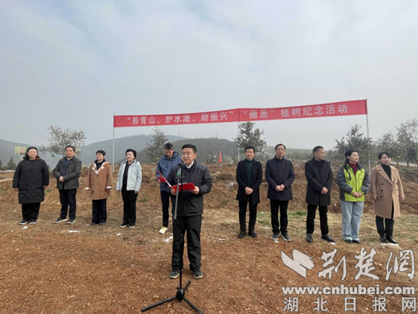 荆楚网(湖北日报网)讯(通讯员 陈小芳、李路遥、李镇海)3月3日上午,主题为“养青山、护水源、助振兴”的十堰市2024“橄恩”植树活动在十堰市郧阳区杨溪铺镇东方橄榄园举行。十堰市政协副主席刘庆涛、市统战部副部长、市工商联党组书记王静、市工商联主席陆永强、市林业局副局长肖囯华、郧阳区政协主席党永生等一行领导参与植树活动。