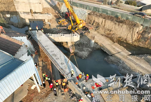 当日上午9:30,魏家桥左幅开始吊板,随着第一块板的落下,左幅梁板吊装完成。晚上6:50,魏家桥左幅3跨12块板全部吊装完成。这标志着魏家桥左幅桥梁主体结构已全部完成,意味着该项目建设取得突破性进展。