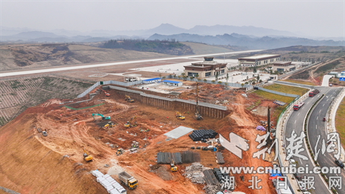 荆楚网(湖北日报网)讯(通讯员 向继华、但兴竹、陈伟)一年春作首,万事行为先。2月17日,位于湖北竹山县麻家渡镇的竹山通用机场临空产业园和低空物流产业园项目施工现场车辆穿梭、机器轰鸣,多台大型设备正在进行混凝土浇筑、钢筋转运、场地平整等工作,项目施工现场井然有序,一派火热景象。