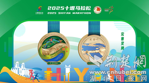 堰马的完赛奖牌以绿叶为外形,凸显美丽十堰“绿水青山”的生态特质,将武当山的雄伟壮阔、丹江口水库的碧波万顷、东风汽车的大气威武融为一体,以十堰市花石榴花簇拥太极八卦纹路,表达十堰团结奋进的城市精神和悠久厚重的文化底蕴,奖牌独具匠心,具有较高的审美价值和收藏价值,将成为每位参赛者喜欢的“十堰印记”。