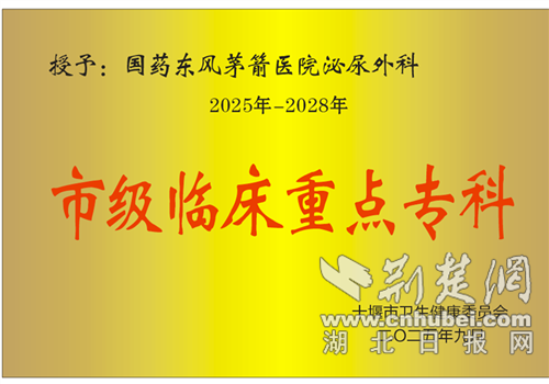 荆楚网(湖北日报网)讯(通讯员 喻钦 田瑞华)近日,国药东风茅箭医院泌尿外科荣获2025年度十堰市“市级临床重点专科”称号,标志着科室在医疗技术、学科建设与服务品质上实现突破性发展,也彰显了医院在区域泌尿外科领域的学术地位。