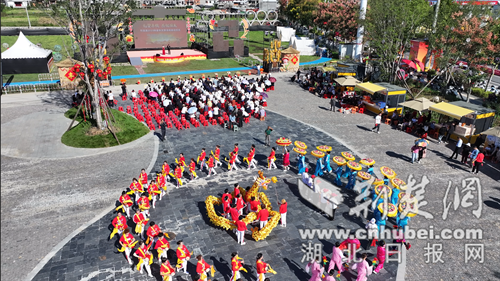当天下午,活动在极具地方特色的民俗表演拉开帷幕。激昂锣鼓声中,色彩斑斓的“巨龙”在队员手中翻腾,时而蜿蜒盘旋,时而直冲云霄,寄寓风调雨顺、国泰民安;随后,腰鼓队踏着明快节奏登场,队员步伐矫健、红绸飞舞,鼓点敲出竹溪人民的喜悦与豪情;万民伞表演尤为夺目,演员们手托华丽伞盖稳步行进,象征万民同心、共享太平,满含对家乡繁荣、祖国昌盛的祈愿。