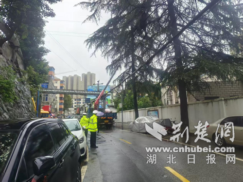 荆楚网(湖北日报网)讯(通讯员 胡俊 涛刘月)近期,十三中校园旁树木生长较快,有些树枝已经压到空中线缆,遇到风雨天气,还可能断裂砸到行人,存在不小的安全隐患。张湾社区了解情况后,主动协调相关单位,于2025年9月23日安排人员对树枝进行修剪,及时消除隐患。