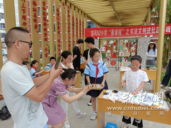 如今,走进东风52小学,随处可见师生创作的书法文创产品。学校表示,将持续深化“墨”课程体系建设,以书法教育为支点,撬动五育融合新实践,让墨香浸润校园,让文化滋养学生成长。