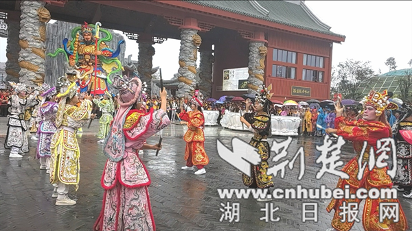 荆楚网(湖北日报网)讯(通讯员 杜达巍 )9月28日至29日,2025“山海之约·寻根之旅”闽台地区武当山文旅活动在武当山举行,来自闽台地区的2700名游客参加活动。国家级非物质文化遗产潮汕英歌舞与湖北省非物质文化遗产房县黄酒在武当山下“相遇”。