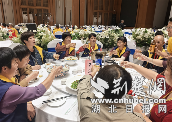 当晚,武当一梦广场摆起200多席的千人宴,欢迎远道而来的闽台游客。2700名游客围坐共进晚餐,共同品尝武当特色菜肴、同饮房县黄酒。天空虽然飘着雨,却丝毫不减游客们的热情,不少游客品尝后现场下单选购,并留下工作人员联系方式。