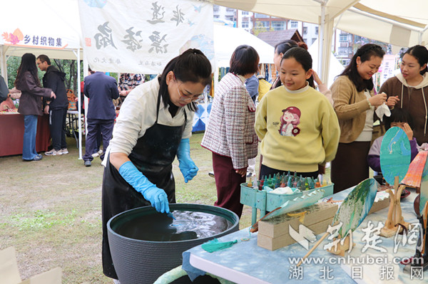 同时,近30个农户摊位热情展销,猕猴桃、土鸡蛋、黄酒、蜂蜜等特色农产品琳琅满目,游客们边走边挑,把“乡愁”装进购物袋,不少农户表示“半天卖完了一周的货”,真正实现了“摊位上有收入,家门口有销路”。在文创手作区,摊位集结本地木艺、染织、陶艺等十余类匠心手作工艺品,大家慢下脚步细细欣赏。还有武当滑雪场的专属摊位,进行滑雪设备展示和滑雪体验券免费派送,当天共派出超800张滑雪体验券,提前为游客解锁冬季运动乐趣。此外,活动还带动周边20余家农家乐同步爆满。箭飞航空无人机试飞区排起长队,小朋友们都想亲手操控,过一把“飞行瘾”。