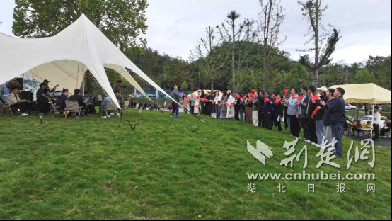 红歌映秋传薪火。9月30日清晨,茅箭区茅塔乡东沟革命旧址的银杏树下,数百名干部群众手持小红旗,齐声唱响《没有共产党就没有新中国》,歌声穿山谷、绕溪流。在四四厢遇园区内,老工人李建国带领青年职工高唱《咱们工人有力量》,黄色厂房墙面、粗犷的桁架成了最动人的背景板;人民小学的孩子们身着校服,以《祖国有我》的童声宣誓,城乡联动的“红歌快闪”让红色基因在秋日里代代相传。