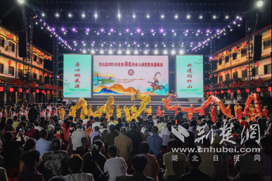 荆楚网(湖北日报网)讯(通讯员 章伟 徐丹)非遗润竹山,匠心桃花源。10月7日晚,湖北省竹山县桃花源街区女娲广场灯火通明,2025年优秀非遗传承人颁奖暨展演活动在此举行,3000余名游客与市民驻足观赏,沉浸式感受传统技艺的文化魅力。这场“静态展示+动态表演”的文化盛宴,正是当地以非遗激活文旅产业融合发展的生动缩影。