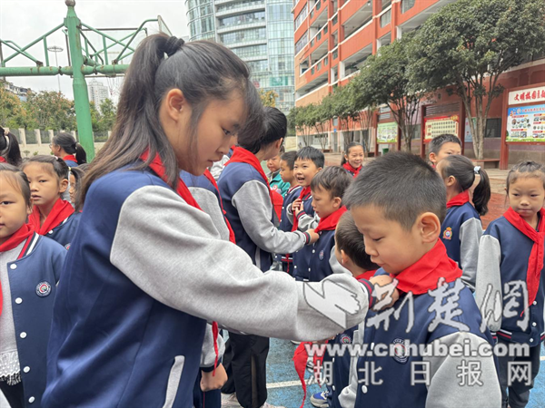 荆楚网(湖北日报网)讯(通讯员 魏淼)为庆祝中国少年先锋队建队76周年,引导广大少年儿童继承和弘扬少先队的光荣传统,展现新时代好队员的精神风貌,10月11日上午,十堰市张湾区实验小学全体师生齐聚学校操场,隆重举行了“强国复兴有我 争当新时代好少年”主题建队日暨新队员入队仪式。