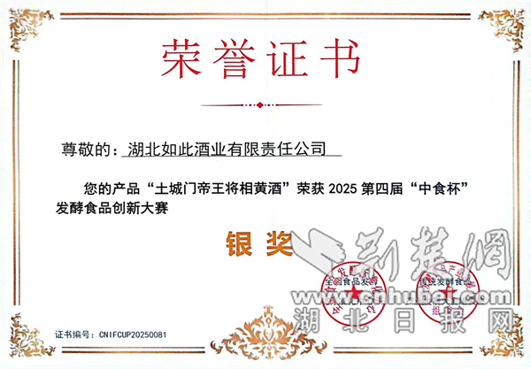 湖北如此酒业有限责任公司获奖的“土城门帝王将相黄酒”为甜型黄酒,以糯米、小曲、水为原料,结合传统宫廷工艺与现代科技,经过45道工序280多天精心酿造而成,总糖含量介于100至150克每升之间,酒精度15度。产品采用国际通用750ML容量装,改进葡萄酒木塞为硅胶塞,螺旋型长瓶盖在工业创意上实现突破,圆筒礼盒色调协调造型独特美观,内置新颖酒脖、双海绵,每处细节都有创新体现。产品把非遗技艺传承与房县帝王将相文化有效结合,黄酒技艺和宫廷文化相得益彰,荣获最佳创意奖。