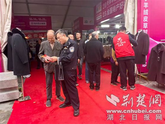 荆楚网(湖北日报网)讯(通讯员 杨富清 骆明栓)为守护群众财产安全,营造良好营商环境,10月16日,十堰市张湾区车城路街道人民广场社区携手东岳路派出所,在人民广场特产好物节展销会现场开展了“反诈宣传进集市,安全检查护民生”活动,以“宣传+检查”双管齐下,为商户和居民送上“安全大礼包”。