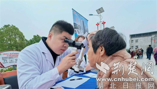 国药东风总医院选派的乳腺·甲状腺外科、脊柱外科、老年医学科、内分泌代谢科、呼吸与危重症医学科、神经外科、眼科、消化内科共8个科室专家,一大早就感到高岭村村委会前广场。