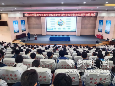 荆楚网(湖北日报网)讯(通讯员 罗台成 朱晓琳)10月30日上午,2026年空军青少年航空学校一行走进思源实验学校开展招生宣传和初选工作,学校组织七八九年级航空班及其他班优秀学生600多人参加活动。