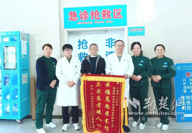 荆楚网(湖北日报网)讯(通讯员 秦洪涛 张云娣) 巡山时造大量马蜂袭击,全身被蜇伤约40处,经十堰市人民医院直升机紧急转运与急诊科团队全力抢救,最终转危为安。近日,康复出院后的王先生专程返回医院,将一面锦旗送至医护人员手中,以表达对该院高效救援和精准治疗的由衷感谢。