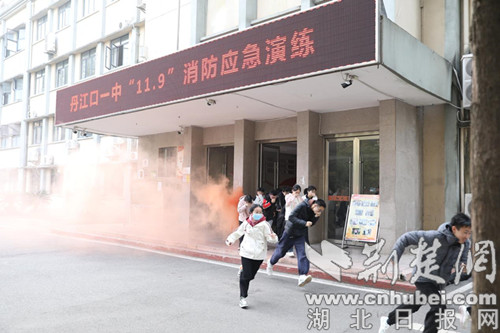 荆楚网(湖北日报网)讯(通讯员 张国富、刘遵群、苌晓昱)11月4日上午,随着一阵急促的警报声划破长空,丹江口一中“11·9消防日”消防安全逃生演练拉开帷幕。学校高一年级1000余名师生弯腰捂鼻,仅用时2分48秒便全部安全撤离至操场,上演了一场“火场”逃生的实战教学。