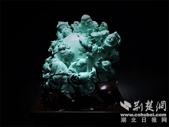 曹红星非遗绿松石雕刻作品《五子贺寿》。通讯员 供图