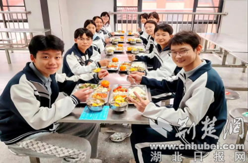 观音中学的学生正在用餐。 通讯员 供图