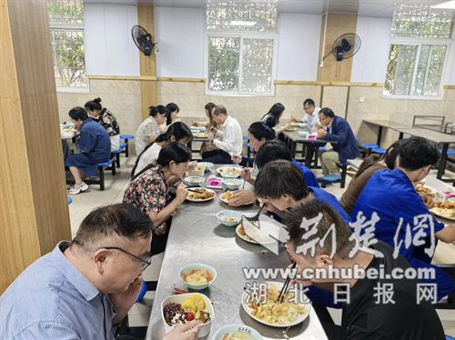 院领导、膳食监督委员会成员共同陪餐。通讯员 供图