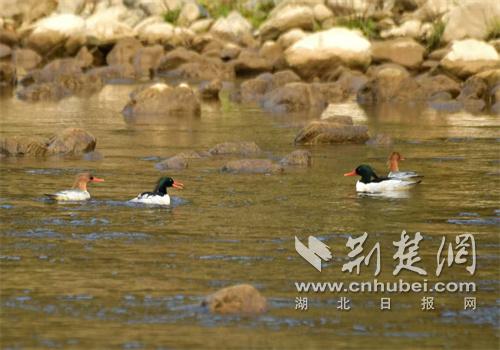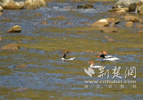 据了解,中华秋沙鸭对选择越冬地的水质要求很高,近年来连续在十堰市黄龙镇、郧阳区、丹江口市等地均有发现,说明该市生态环境整体持续向好。