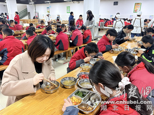荆楚网(湖北日报网)讯(通讯员 郭小兵)笔者11月17日从十堰市东山苑寄宿学校获悉,为筑牢校园食品安全防线,切实保障师生用餐安全,该校严格执行校领导陪餐制度。就餐时段,校领导轮流走进食堂与学生同标准就餐,逐一细致检查菜品温度、口感,以及餐具消毒、环境卫生等关键环节,将“舌尖上的安全”落到实处、做细做实。