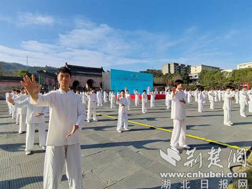 荆楚网(湖北日报网)讯(通讯员 秦永刚)11月23日,为庆祝“国际太极拳日”的设立,一场“国际太极拳日”申报成功的纪念展演活动在武当山玉虚宫隆重举行。丹江口二中近千名学子整齐列阵,共同演绎太极八法五步,成为活动中一道亮丽的人文风景。