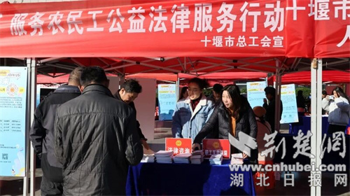 荆楚网(湖北日报网)讯(通讯员 赵鹏)近日,十堰市人民广场人头攒动、氛围热烈,十堰市总工会在此开展“尊法守法·携手筑梦”服务农民工公益法律服务行动和“工会帮就业”招聘活动,把法律知识和就业岗位送到职工群众“家门口”。