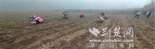 荆楚网(湖北日报网)讯(通讯员 胡梦瑶 李敏)12月3日,郧西县羊尾镇大院村7组的田间地头一派繁忙景象。村民们分工有序,动作娴熟,有的精心分拣饱满的黄花菜种苗,有的在整齐的田垄上挥锹挖坑。一株株嫩绿的菜苗被稳稳栽入土中,成行连片的种植区已初具规模,为全村增收致富播下了新的希望。