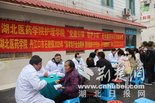 荆楚网(湖北日报网)讯(通讯员 李龙霞 张振桐 黄金涛 黄蔷)12月2日,湖北医药学院护理学院党委联合丹江口市第一医院党委、丹江口市石鼓镇党委,以“深学笃行全会精神 勇担健康守护使命”为主题,在石鼓镇举办“健康集市”走进乡村首站活动。湖北医药学院党委副书记、组织部部长张海蛟,护理学院党委书记王桂琴,十堰市卫健委党组成员、副主任张桃桃,丹江口市第一医院党委书记刘勋,石鼓镇党委书记熊欣等领导出席,校院村三方党员干部、医疗专家、师生志愿者及当地群众百余人共同参与。活动通过健康义诊、急救培训、爱心慰问与健康科普、校院合作洽谈等形式,将优质医疗服务送达“守井人”身边。