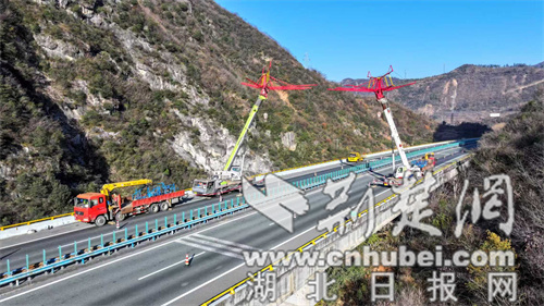 值得一提的是,针对西十高铁乾兴-东河牵引站输电线路跨越高速、国道、高山和峡谷的地域特殊性,导致电力物资运输难度大的难题,汉江发展项目管理部团队因地制宜,采用搭建索道、使用无人机吊装和自行驶轨道车等空、地一体化运输方式,有效克服地形障碍,保障塔材、设备的安全运输和精准安装。同时,创新引入移动式伞形跨越架等新型设备,有效提升线路跨越的作业效率与安全性,显著提高整体施工效率。