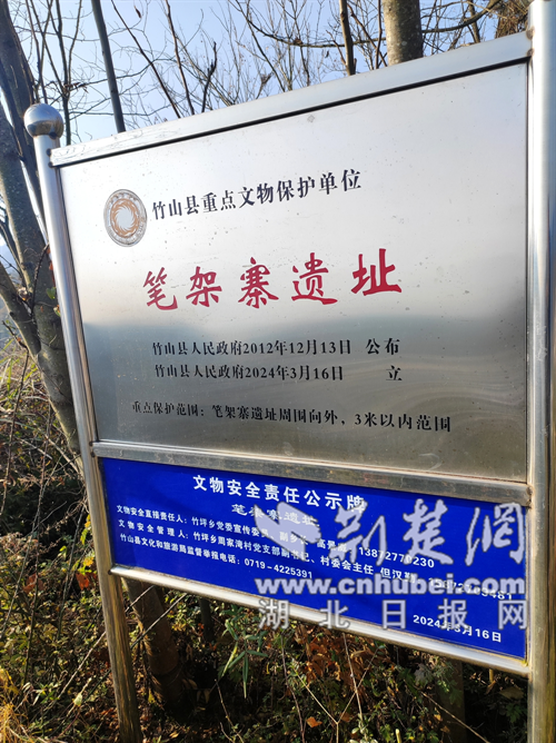 荆楚网(湖北日报网)讯(通讯员张云朝)12月18日,笔者在冬日的暖阳下,探访了竹山县竹坪乡县级文物保护单位笔架寨。
