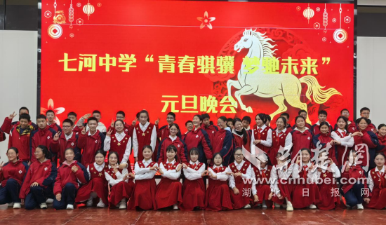 荆楚网(湖北日报网)讯(通讯员 施海涛)近日,十堰市房县七河中学举行以“青春骐骥 梦驰未来”为主题的元旦文艺晚会。整台晚会汇聚合唱、舞蹈、小品、情景剧、朗诵+大合唱等多种艺术形式,精彩节目轮番上演,展现出学子们蓬勃的青春活力与多元的艺术才华。