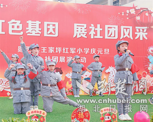 荆楚网(湖北日报网)讯(通讯员 陈丽君 吴娜)12月30日,十堰市郧西王家坪红军小学校园内欢歌笑语、暖意融融,庆元旦社团展演活动隆重举行,全体师生及家长代表齐聚一堂,共迎新年。活动以“承红色基因 展社团风采”为主题,集中展现了学校社团建设的丰硕成果与学子们的蓬勃朝气。