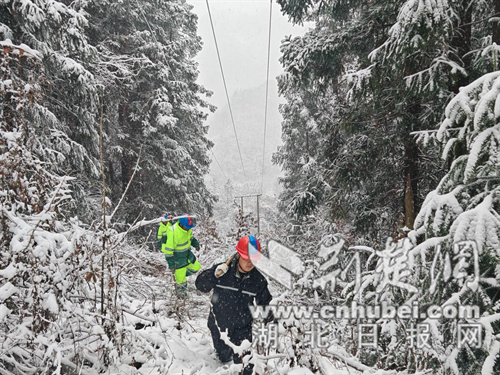 荆楚网(湖北日报网)讯(通讯员 华乐微 李琳琳)近日,十堰市气象台发布暴雪蓝色预警信号,寒潮裹挟雨雪席卷而来。12月31日,元旦佳节临近之际,国网十堰供电公司开发区供电中心工作人员孔路、郑相文等,顶风冒雪奔赴高海拔地区的10千伏川54川武线,开展线路特巡与隐患排查工作,以硬核坚守筑牢节日供电“安全防线”。