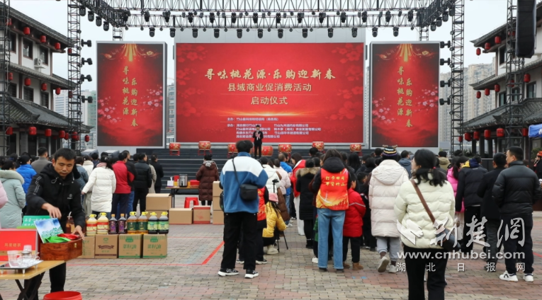 荆楚网(湖北日报网)讯(通讯员 但兴竹)1月2日,竹山县桃花源街区女娲广场洋溢着浓浓的年节氛围,竹山县2026年“寻味桃花源·乐购迎新春”县域商业促消费活动正式启动。本次活动由竹山县科技和经信局(商务局)主办,湖北银行竹山支行、竹山九州通医药供应链有限公司等七家企业共同承办,旨在进一步激活县域消费市场,推动文旅商融合发展,营造喜庆祥和的新春消费环境。
