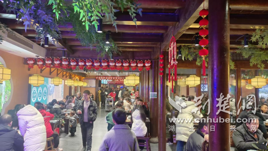 “特色羊汤、炭烤羊排、鲜椒大白鱼等,都是老顾客的必点菜品。元旦期间,我们还专门推出了预约点餐服务,提升消费体验。”大唐名羊餐饮旗舰店负责人龚卫波介绍,元旦节日均接待顾客300多人,营业额比平时翻了一倍。