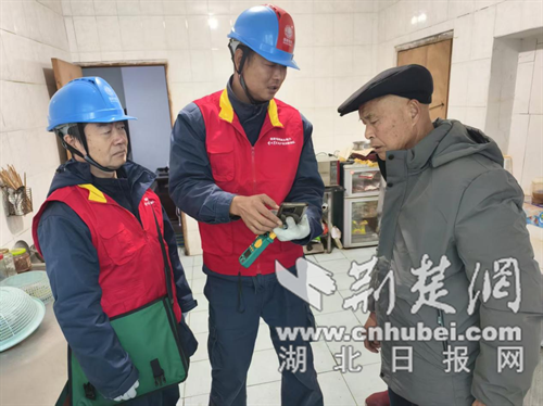 荆楚网(湖北日报网)讯(通讯员 华乐微 邹兆梁)1月6日,国网湖北电力(十堰开发区)楚天星火共产党员服务队队员刘涛、杨红波带着专业工具走进辖区付家湾,为留守老人开展室内线路安全检查,排查用电隐患,以实际行动践行“双优四零”活动要求,为老人温暖过冬筑牢用电安全防线。