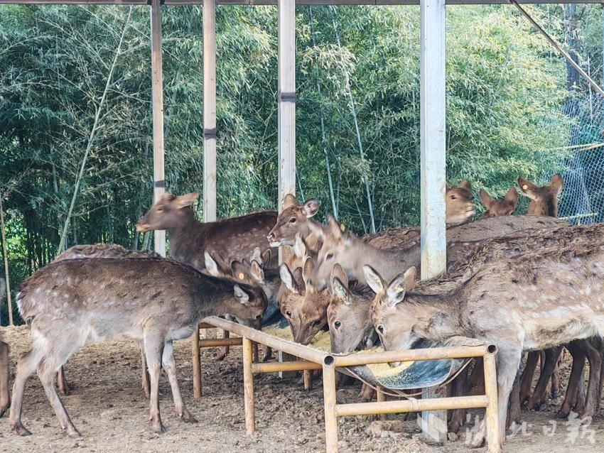 “我们的梅花鹿全程坚持纯天然生态养殖,饲料都是本地取材,这样养出来的鹿品质才好。”肖启军指着身旁的饲料堆放区介绍,合作社的梅花鹿以玉米秸秆、红薯藤等农作物秸秆为主要饲料,再搭配玉米、大豆等本地种植的精饲料,不仅成本可控,更能保证梅花鹿的天然品质。