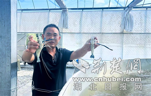 2024年,竹山县养殖户蔡远兵怀揣梦想返乡创业,带着罗氏沼虾养殖的设想,在老家宅基地搭建简易温棚开展试养,成为当地探索特色水产养殖的先行者。他的创业尝试很快得到了县水产部门的关注与帮扶。工作人员多次深入试验基地实地调研,与他面对面交流规划、研判难点,结合当地水资源和气候条件反复论证,最终推荐在条件更佳的五福龙井智慧水产园拓展试验空间。